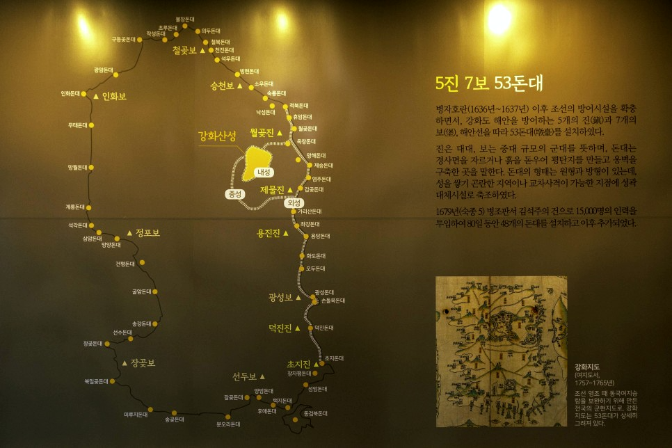 강화도에는 ‘5진 7보 53돈대’라는 독특한 군사 방어 체계가 존재합니다. 이 숫자들은 단순히 과거의 흔적이 아니라, 조선 시대의 군사 전략이 집약된 결과물입니다. 이를 제대로 이해하기 위해선 각 용어의 의미를 명확히 짚고 넘어갈 필요가 있습니다.
