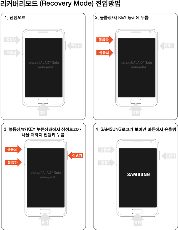 - 삼성 로고가 나타나면 버튼에서 손을 뗍니다.