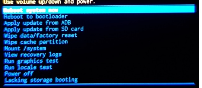 - 리커버리 모드가 다시 나타나면 "Reboot system now" 메뉴를 선택합니다.