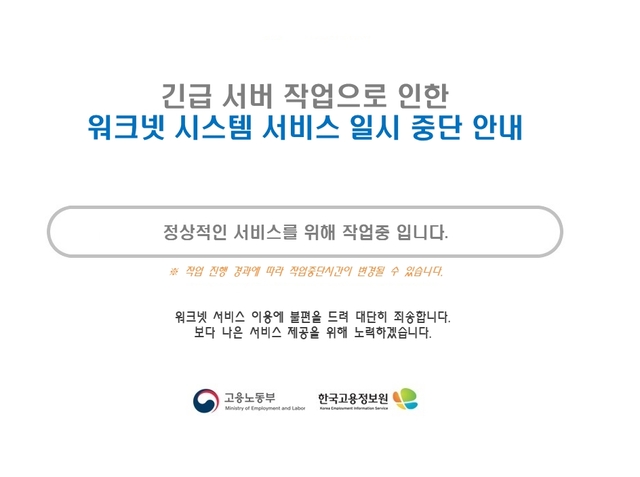 고용24·워크넷 장애로 인한 고용취업 정부사이트 접속 불량 먹통