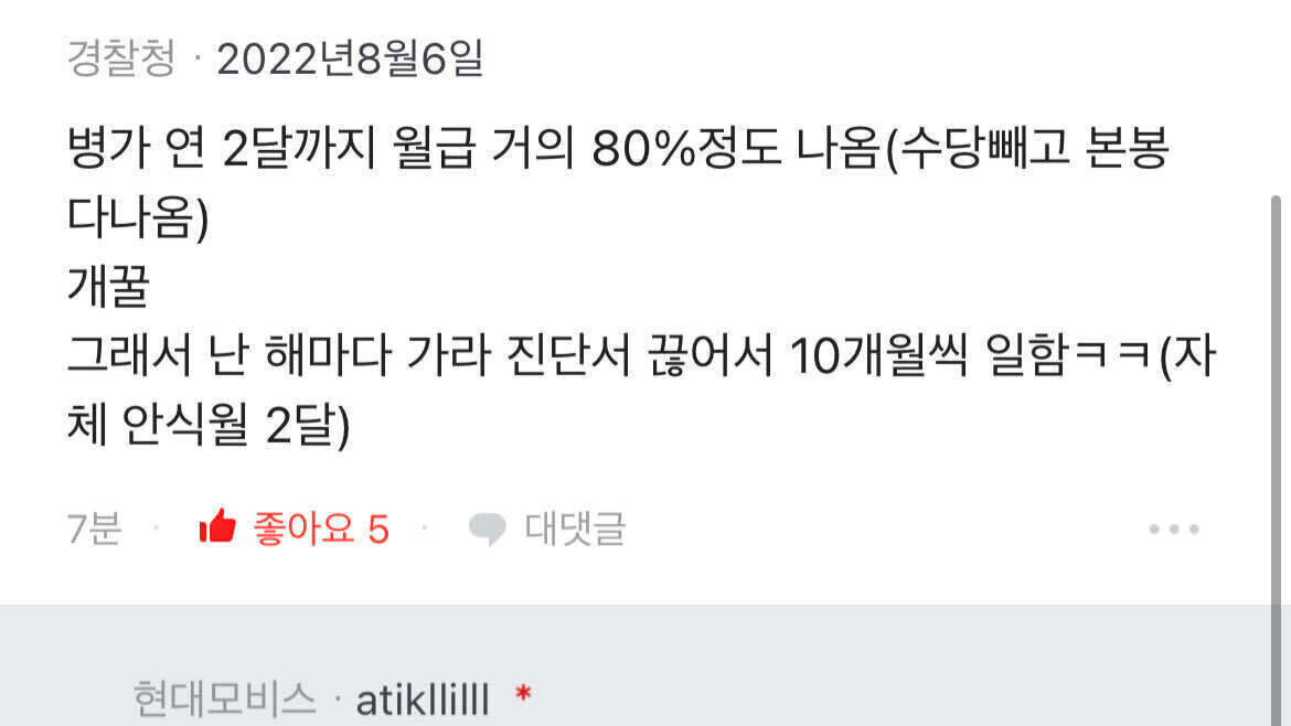 - 4~5일 병가: 진단서 또는 소견서 제출 필요