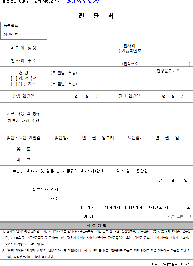 - 의원, 병원, 대학병원 등 의료기관에서 진료 후 진단서 발급 신청