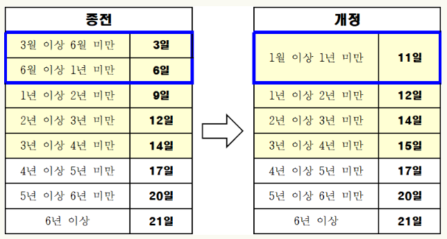 - 1 개월 이상 ~ 1 년 미만 - 11 일