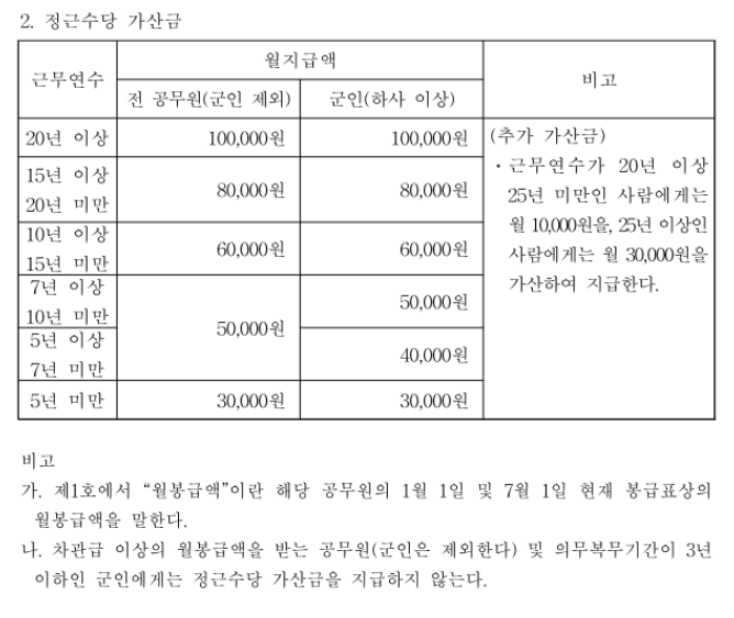 공무원 정근수당 지급 산식