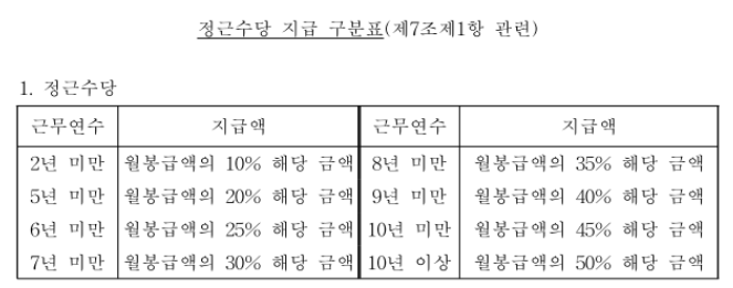 - 7월에 지급되는 정근수당: