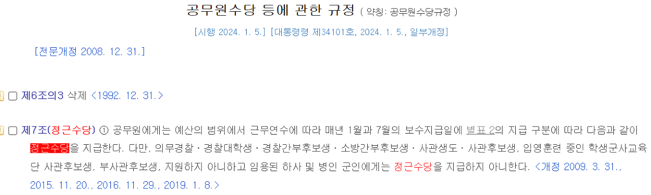 - 지급 방식: 정근수당과 별도로 고정 금액 지급