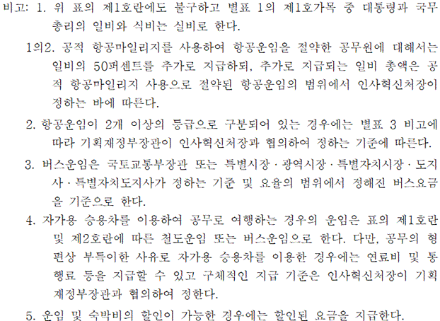 - 인사혁신처 ‘여비제도’ 개요 - 여비 구성 및 별표 참조.