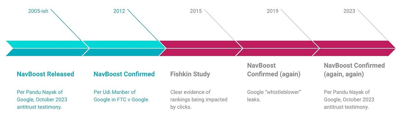 클릭 기반 시스템인 내브부스트(NavBoost)의 존재도 확인되었는데, 이는 구글이 사용자 클릭 데이터를 통해 검색 결과의 질을 평가하고 있다는 것을 의미합니다.