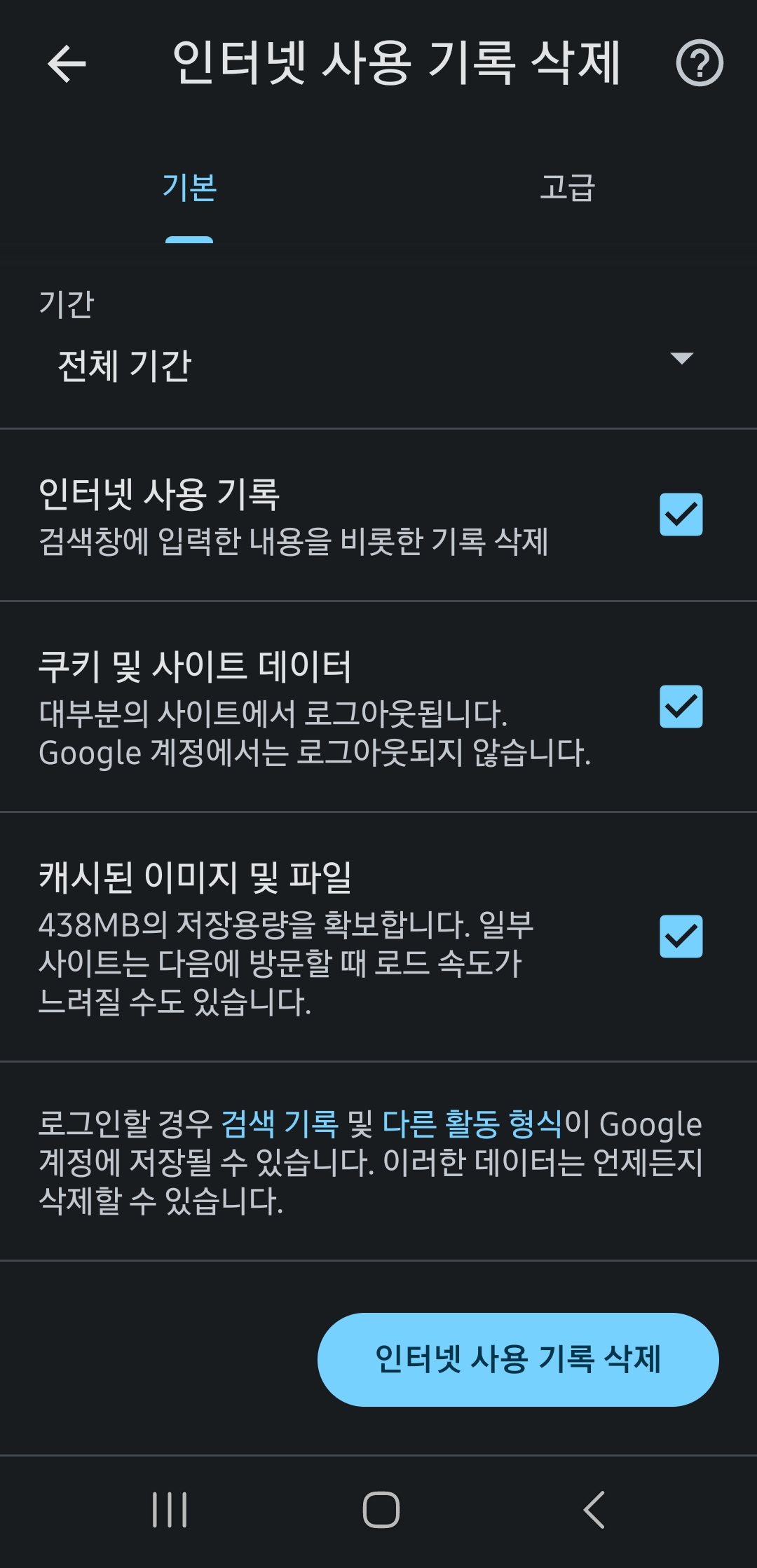 - 검색기록 외에도 방문한 웹페이지의 기록도 삭제할 수 있습니다.