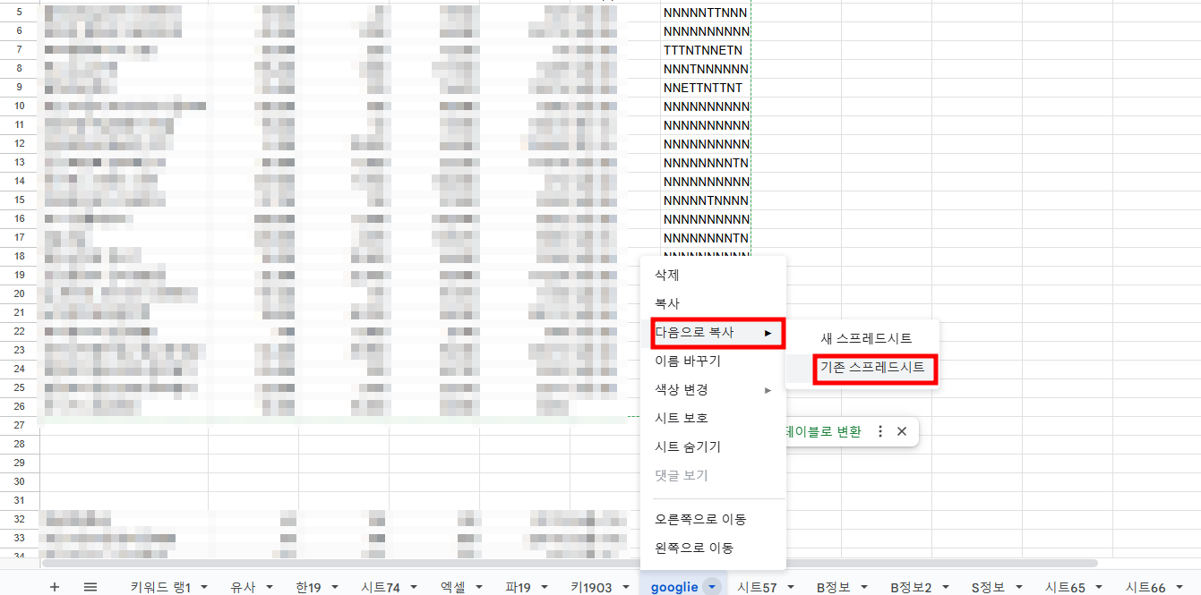 구글 스프레드시트 시트 복사, 이동 방법