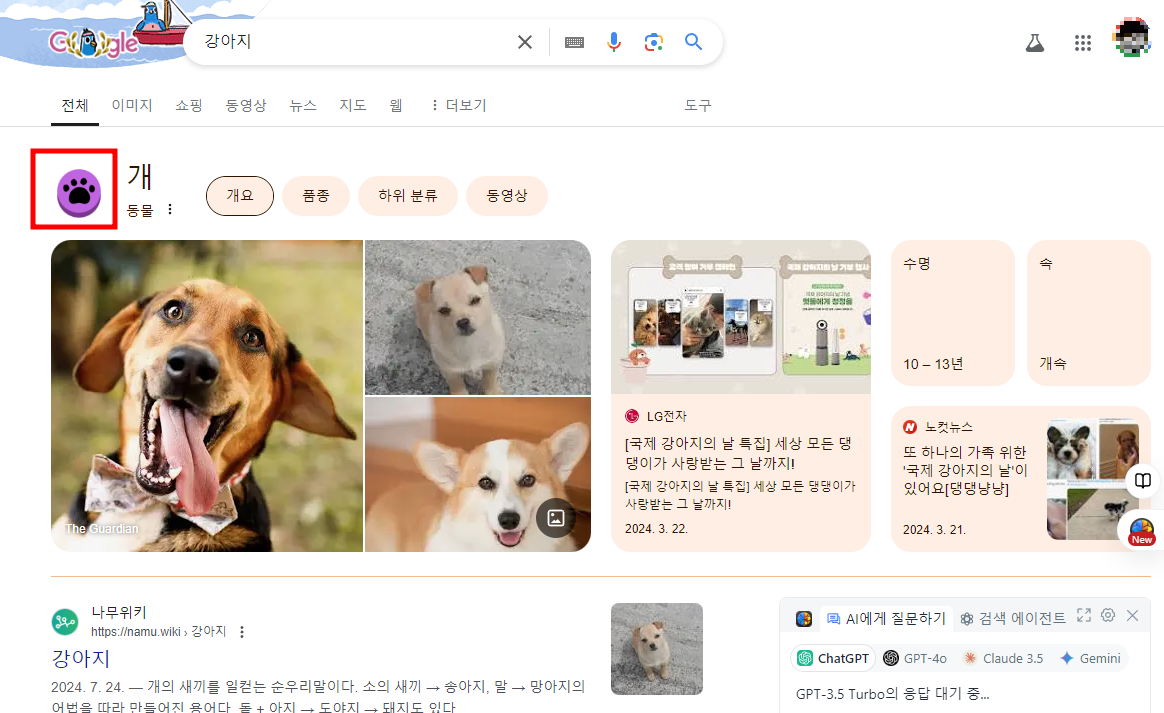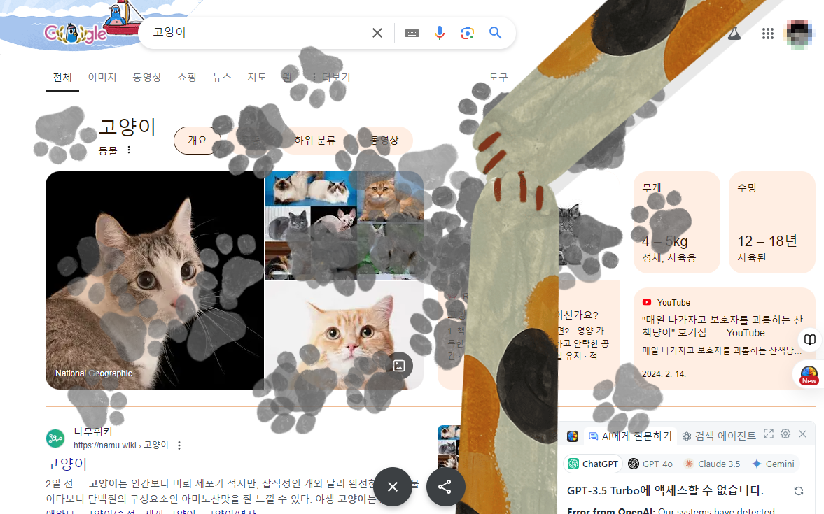 구글 검색창에 'dog', '강아지', 또는 '개'를 입력하고 발바닥 모양 아이콘을 클릭해 보세요. 화면에 강아지 발자국이 나타나며, 귀여운 '멍멍' 소리가 함께 울립니다. 이와 유사하게 'cat' 또는 '고양이'를 검색하고 발바닥 모양을 클릭하면 화면에 고양이 발자국이 찍히며 '냐옹' 소리가 들립니다. 이 작은 재미는 애완동물 애호가들에게 특히 매력적일 것입니다.