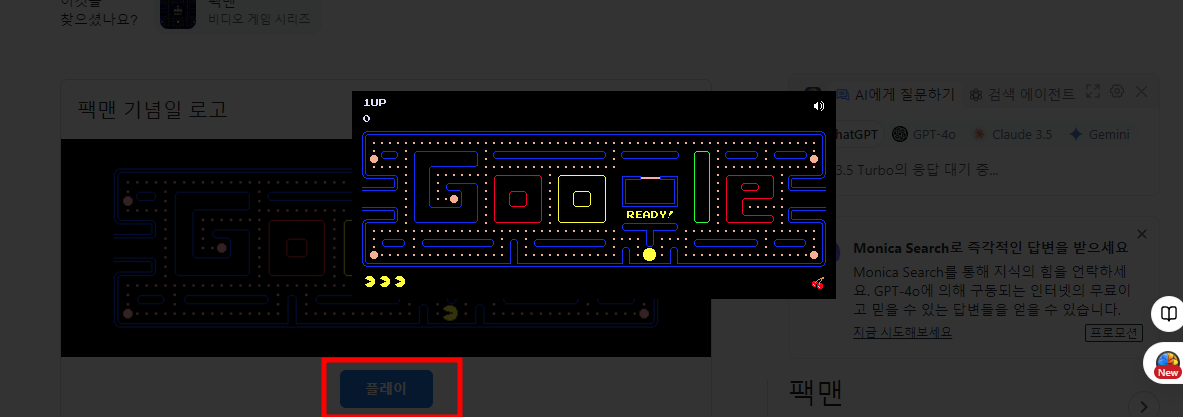 구글 검색창에 '팩맨'을 입력하면 팩맨 게임을 플레이할 수 있습니다. 이 게임은 고전 게임의 매력을 지니고 있으며, 간단하지만 중독성 있는 재미를 제공합니다.