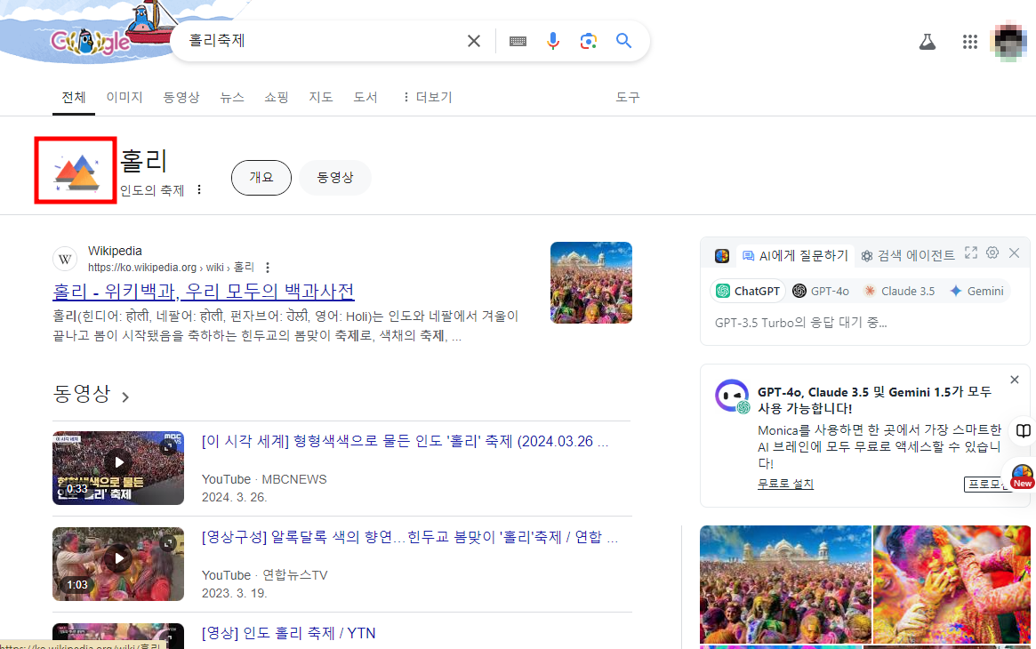 '홀리' 또는 '홀리축제'를 검색한 후 나타나는 물감 아이콘을 클릭하면, 화면에 물감을 던져서 색깔을 입힐 수 있습니다. 이스터 에그는 물 모양 버튼을 눌러 리셋할 수 있으며, 화면이 다채로운 색상으로 변하는 재미를 제공합니다.