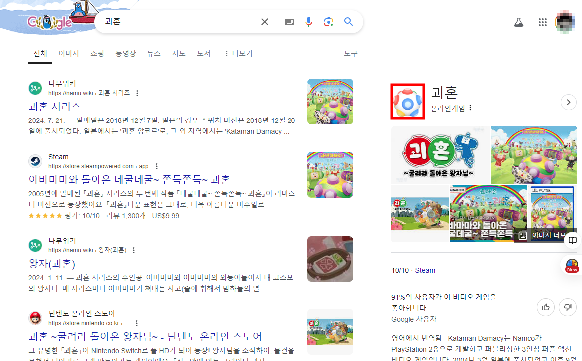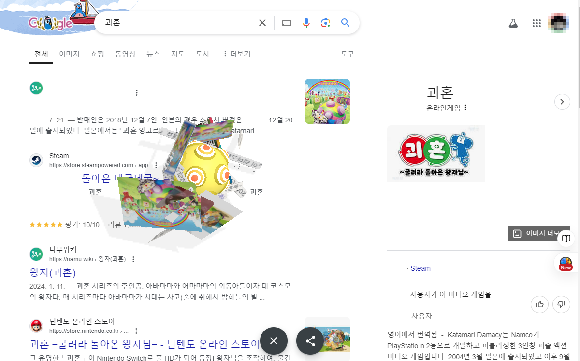 구글에서 '괴혼'을 검색하면 괴혼 게임의 공아이콘을 클릭하면 괴혼이 나오고, 화살표키를 움직이면 검색창 화면의 글씨나 아이콘 등의 요소들을 붙이고 다니게 됩니다. 마우스로 클릭해도 움직입니다. X 버튼을 눌러 리셋할 수 있으며, 이 기능은 간단하면서도 재미있는 게임적 요소를 제공합니다.