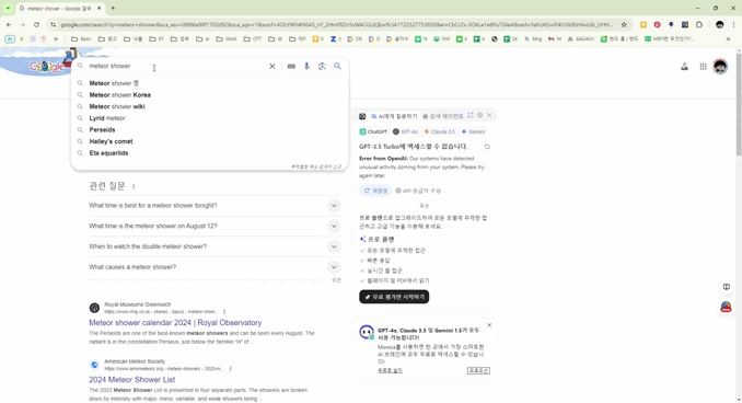 '유성우','유성', 'meteor shower'를 검색하면 별똥별이 떨어지는 모습을 볼 수 있습니다. 이 작은 시각적 효과는 아름다움과 신비로움을 제공합니다.