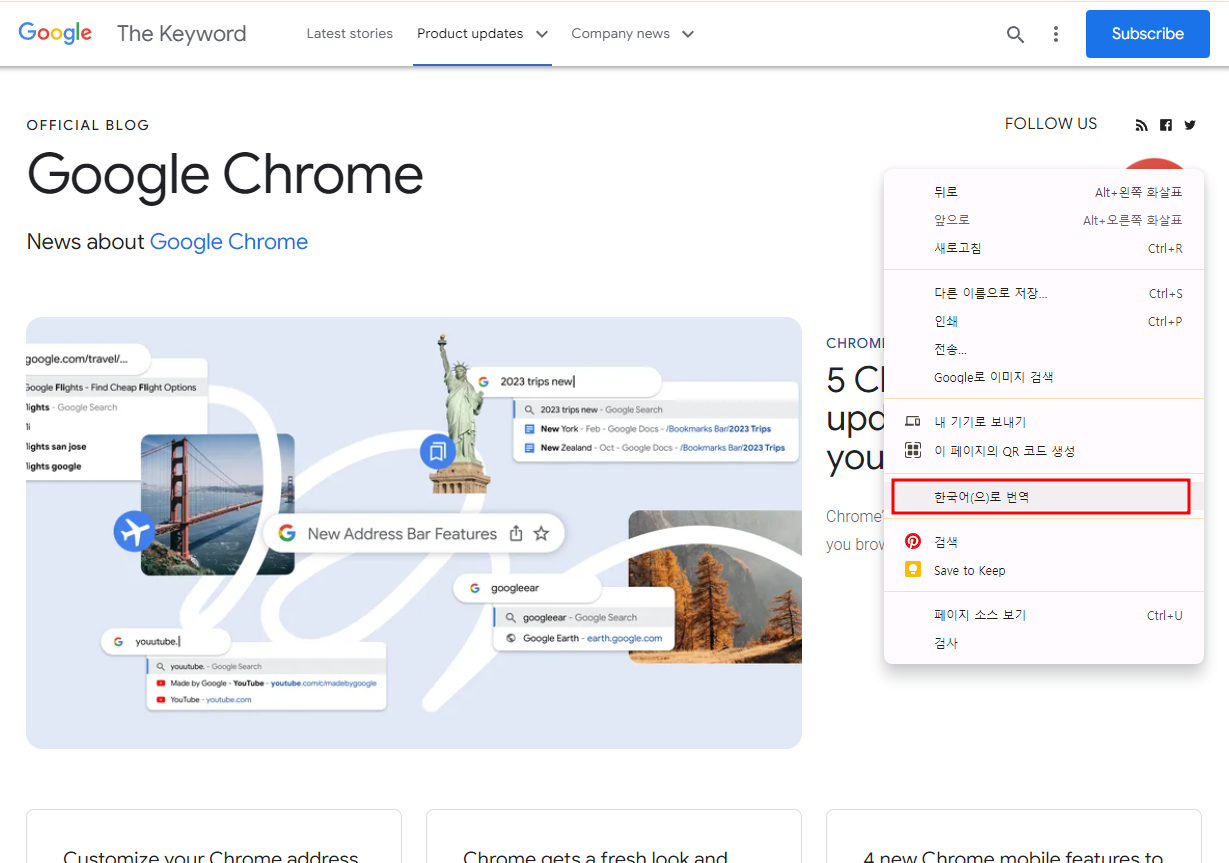구글 크롬 번역기로 바로 웹 페이지 번역하는 여러 가지 방법
