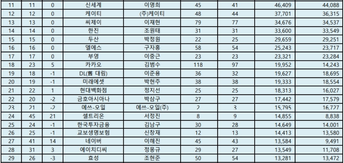국내 대기업 순위 한국 기업 재계 랭킹
