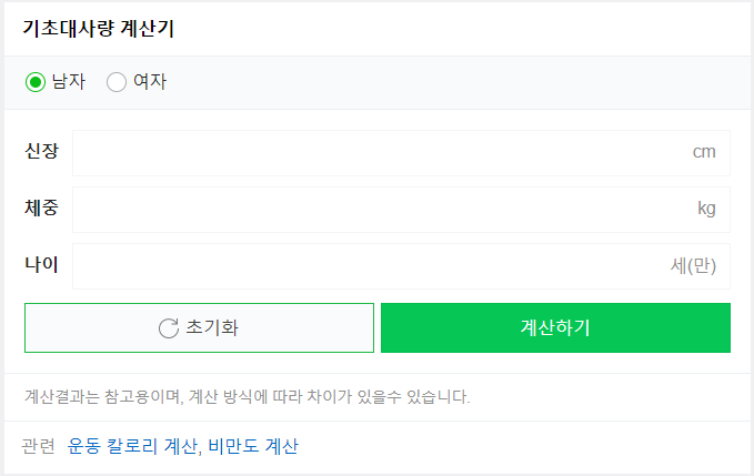 기초대사량 계산기 : 네이버 검색