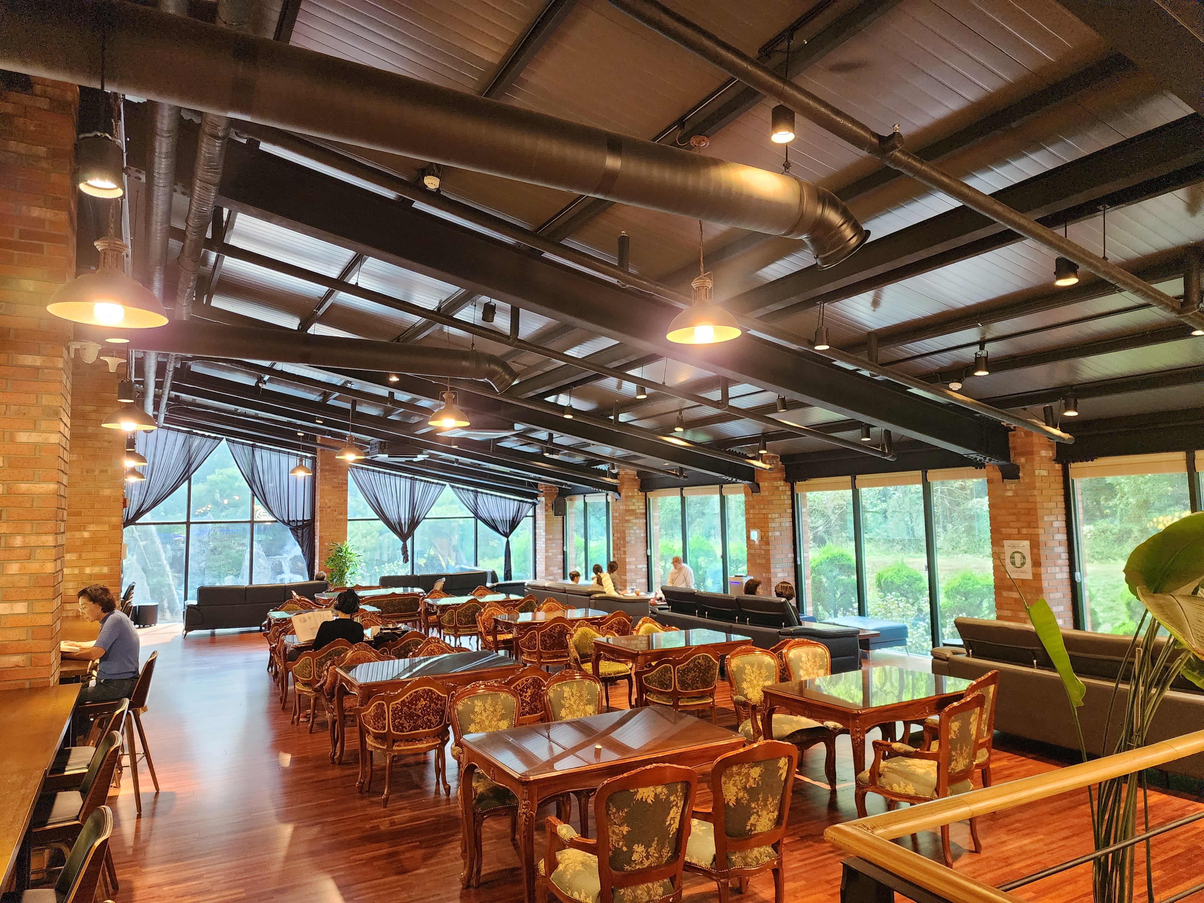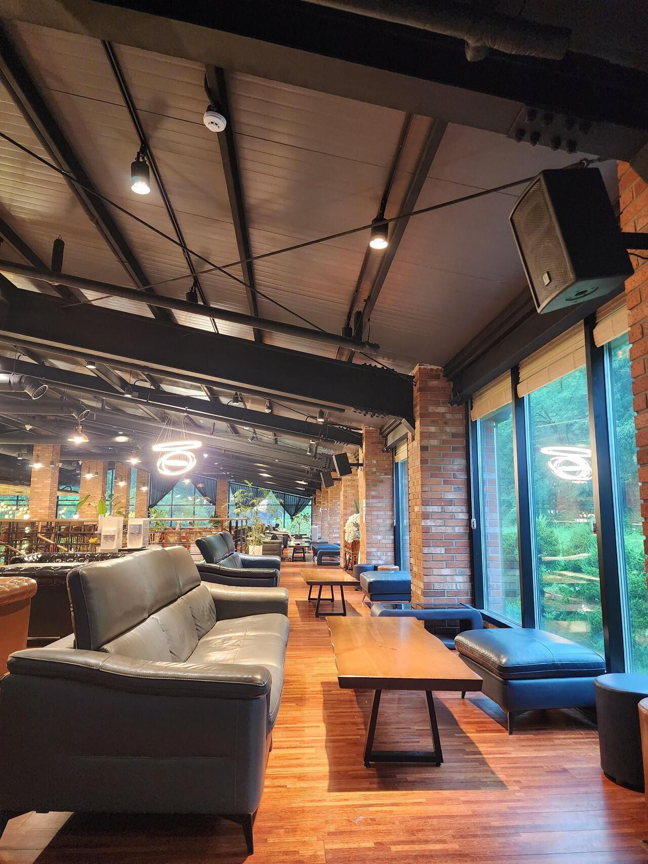 몬떼델피노의 내부는 개방감이 두드러진 공간 구성으로 되어 있습니다. 2층으로 올라서면 통유리 창문 너머로 김포의 전경이 펼쳐지며, 높은 천장과 조명의 조화가 고급스러운 분위기를 자아냅니다. 이러한 공간은 일상 속에서 벗어나 한적한 휴식과 재충전을 경험하기에 매우 적합한 장소입니다.