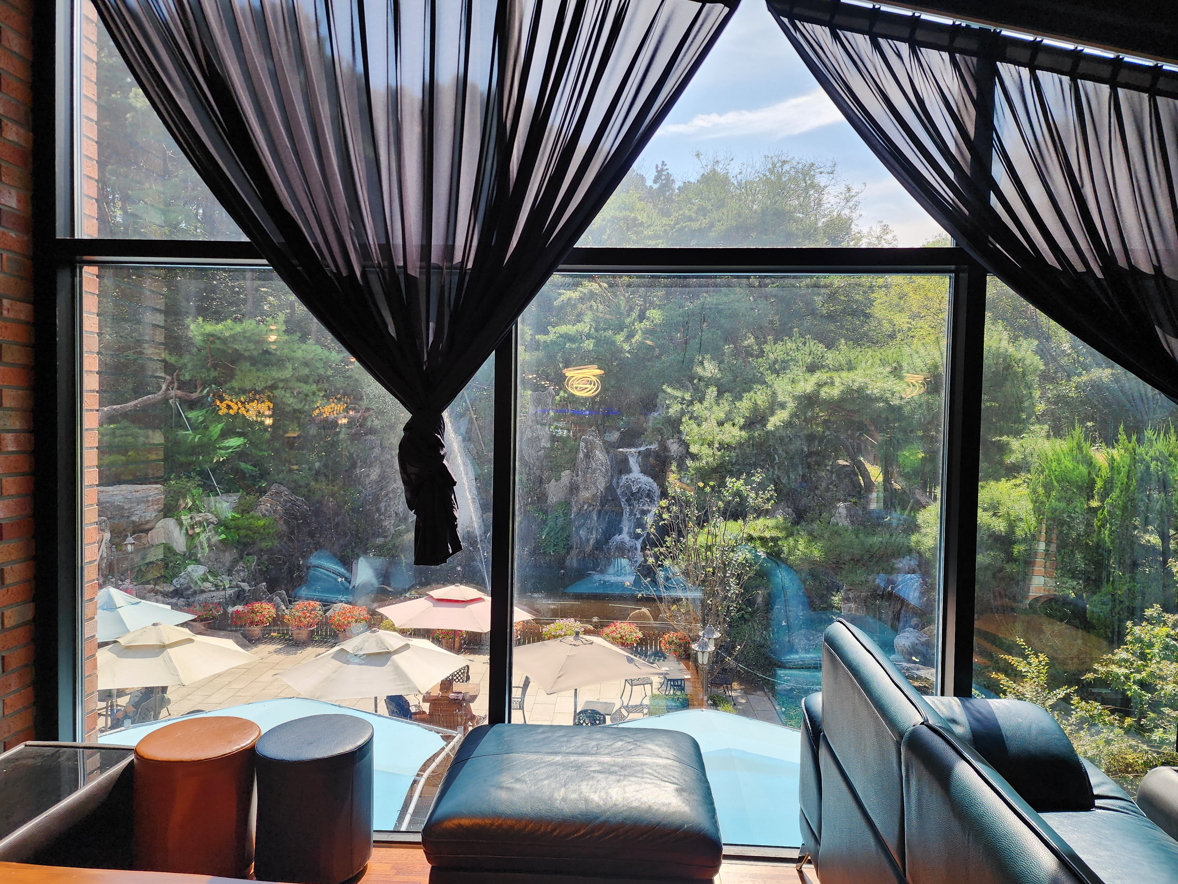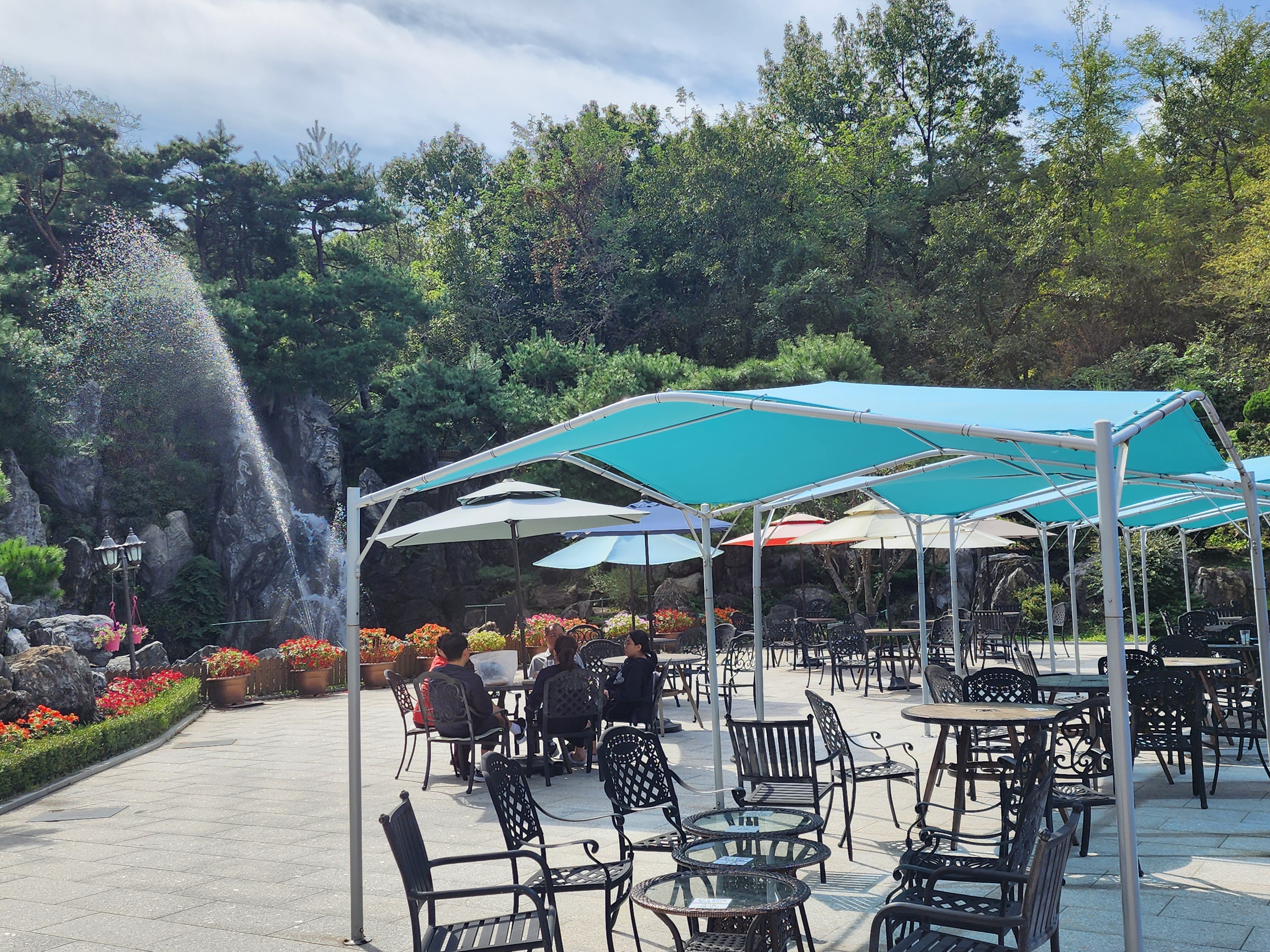 카페 바깥에는 유럽의 정원을 연상시키는 파라솔과 야외 테이블이 마련되어 있어 맑은 날에는 분수가 뿜어내는 시원한 물줄기를 바라보며 여유를 즐길 수 있습니다. 잘 가꿔진 정원과 분수는 도시의 번잡함에서 벗어나 온전한 휴식을 제공하는 특별한 공간을 만들어 줍니다. 이러한 야외 공간은 가족 단위 방문객들에게도 큰 인기를 끌며, 아이들이 뛰어놀기에도 좋은 환경을 제공합니다.
