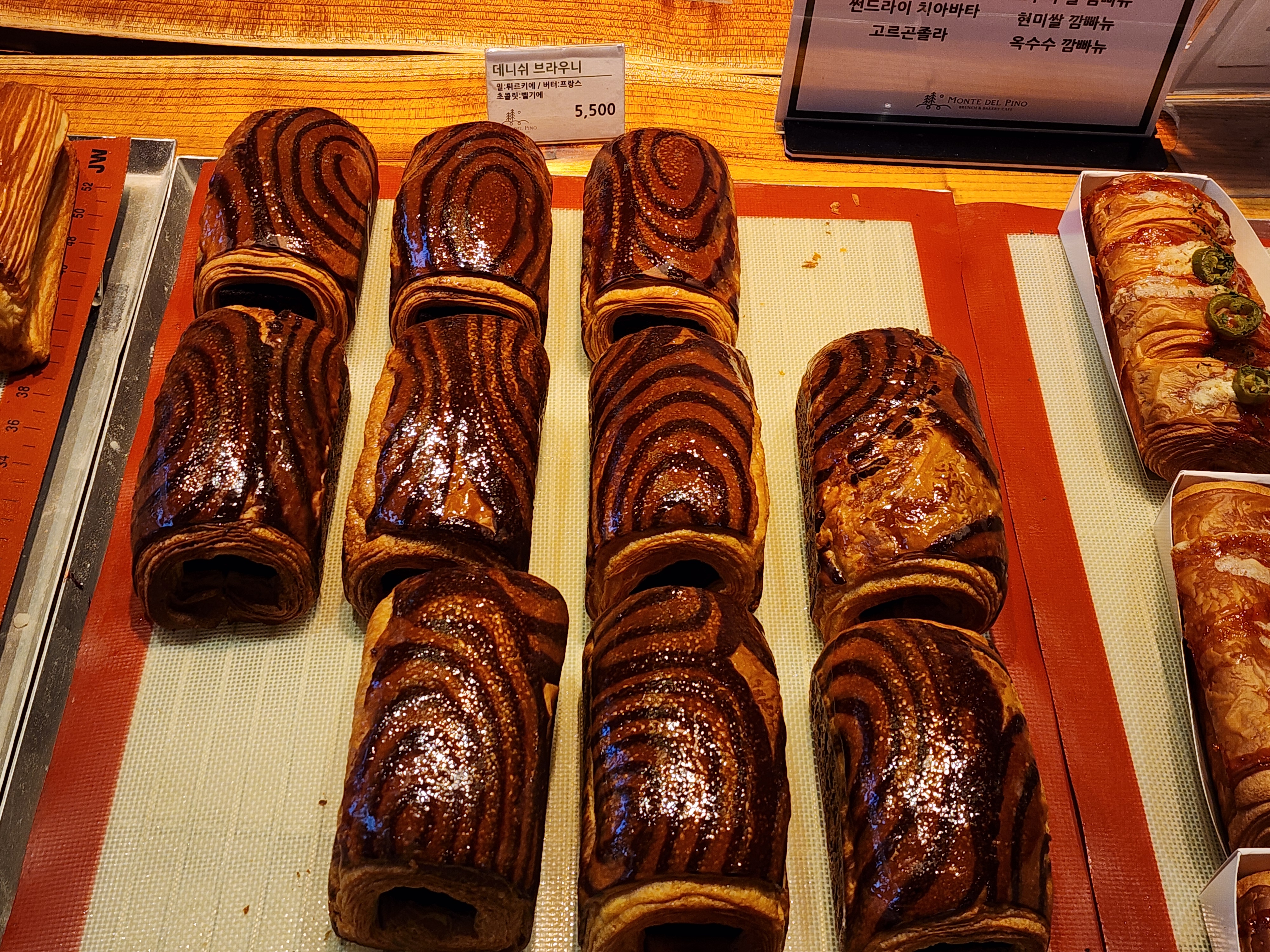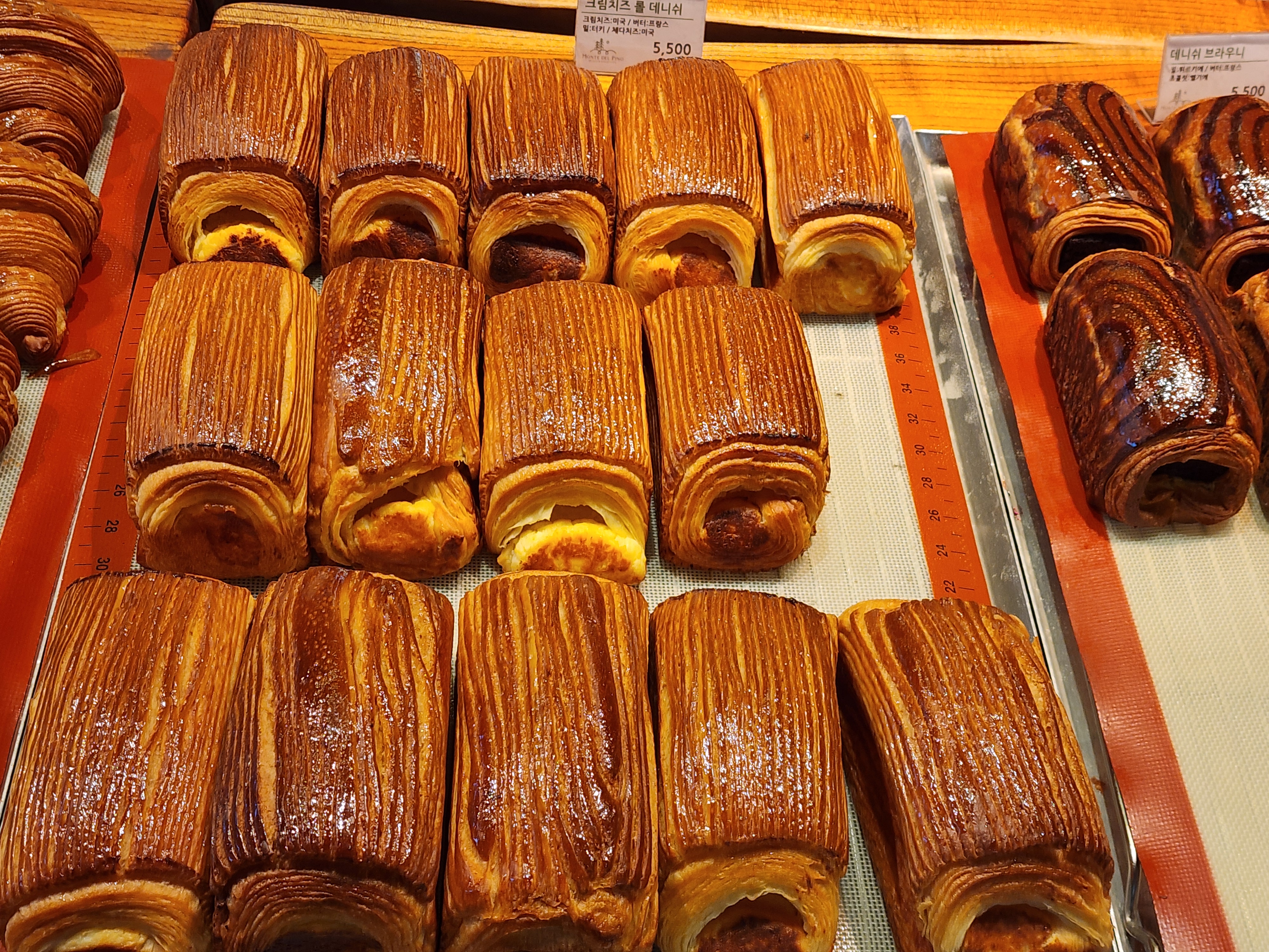 앙버터 크로와상은 촉촉한 앙금과 고소한 버터가 어우러지며 입안에서 부드럽게 녹아내립니다. 그 매력은 매우 강렬하며, 크로와상의 얇고 바삭한 결이 입안 가득 즐거움을 선사합니다. 이러한 맛의 조화는 몬떼델피노가 자랑하는 베이커리 기술력의 결과입니다.