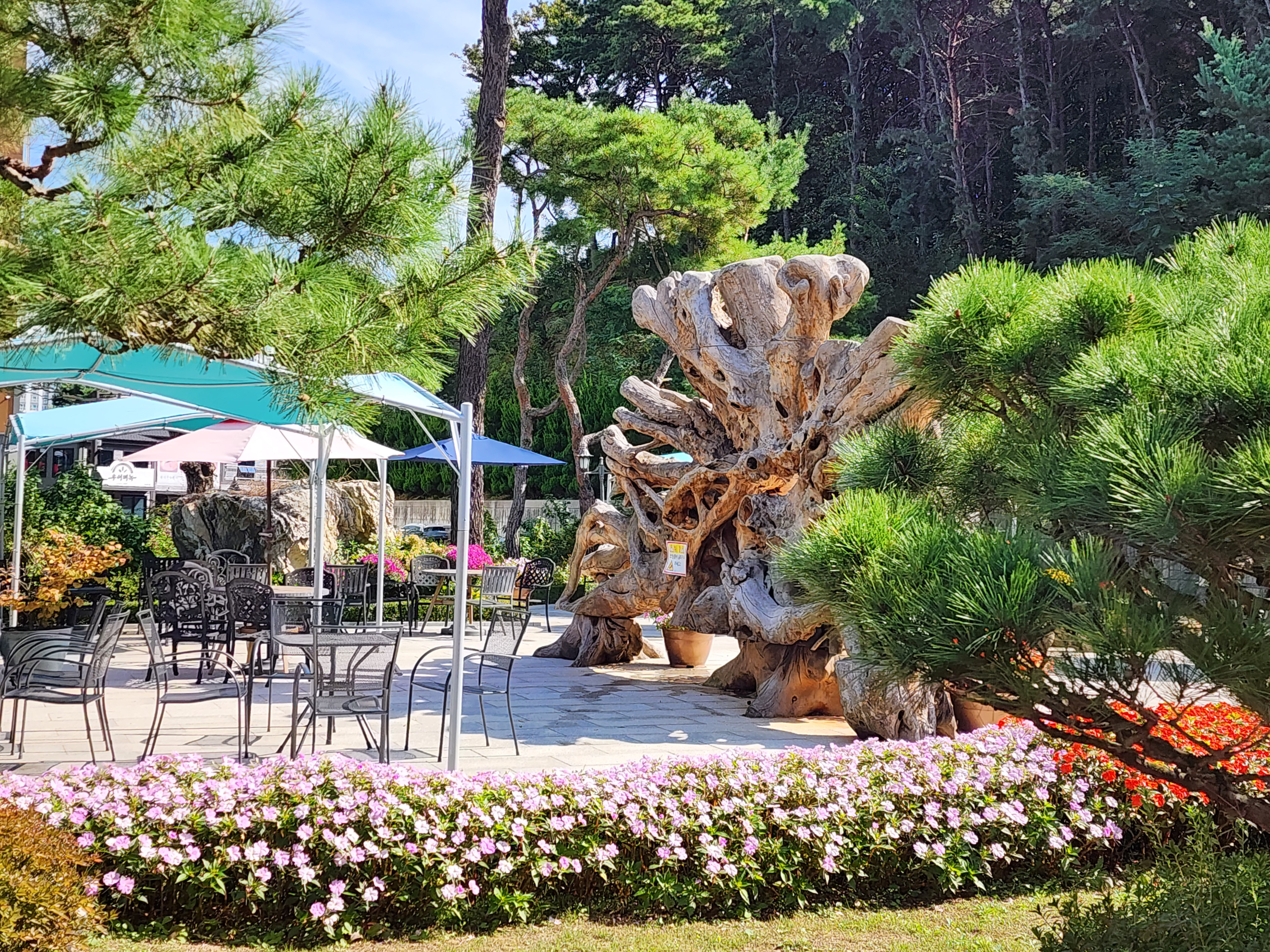 몬떼델피노는 자연과 함께하는 특별한 경험을 제공합니다. 방문객들은 마치 소나무 숲에 들어선 듯한 느낌을 받을 수 있으며, 넓고 쾌적한 외부 공간은 특히 가족 단위 방문객들에게 큰 인기를 끌고 있습니다. 자연을 배경으로 한 포토존도 마련되어 있어 친구, 연인, 가족과 함께 사진을 남기기 좋은 장소로 자리 잡고 있습니다. 또한 사계절 변화에 따라 조경의 매력이 달라지며, 봄에는 신록이 우거지고 가을에는 붉은 단풍으로 장식된 모습을 감상할 수 있습니다.