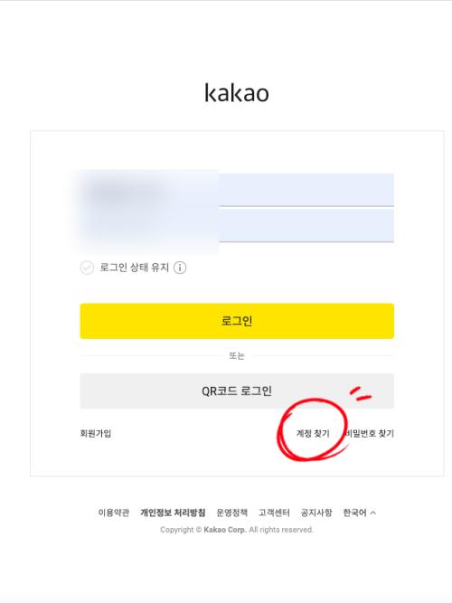 - 먼저 카카오 계정 로그인 페이지를 방문해 주세요.