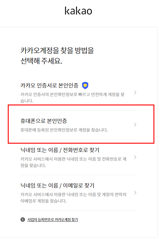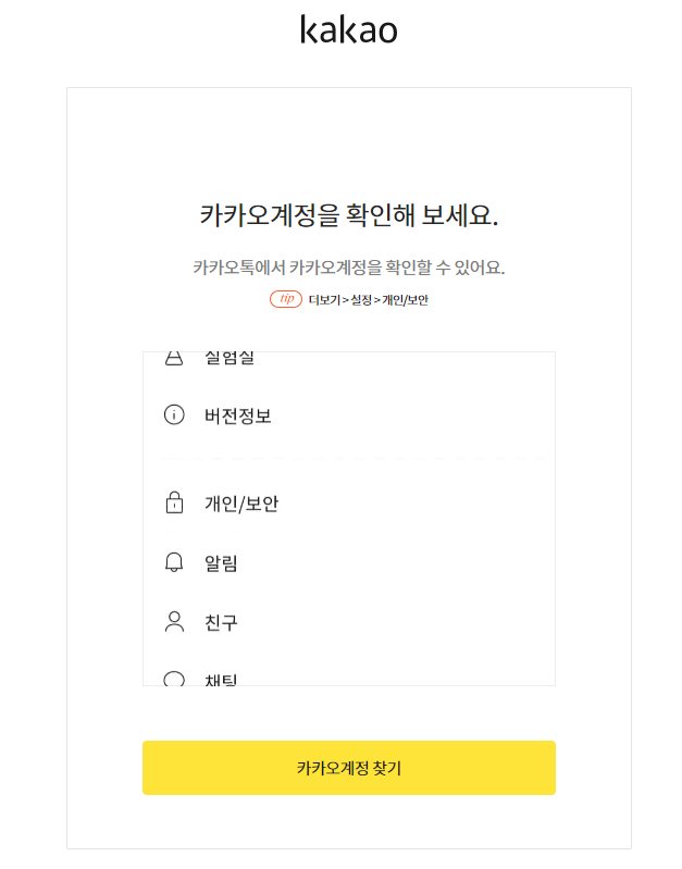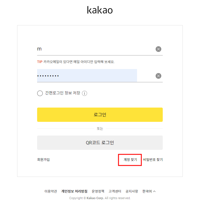- 계정 찾기 클릭: 카카오 계정으로 로그인 후에 "계정 찾기"를 클릭합니다.