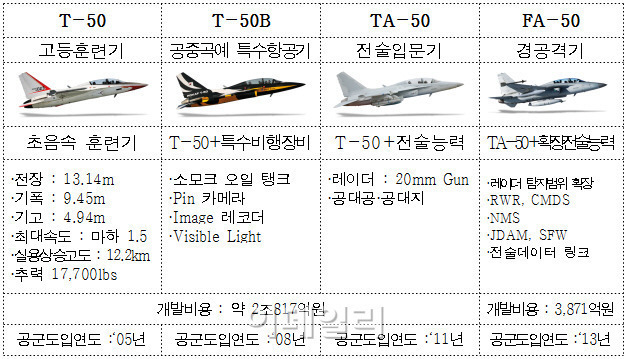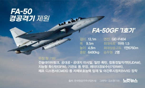 - 특징 : T‑50 골든이글 기반 다목적 경공격기, 마하 1.5 초음속