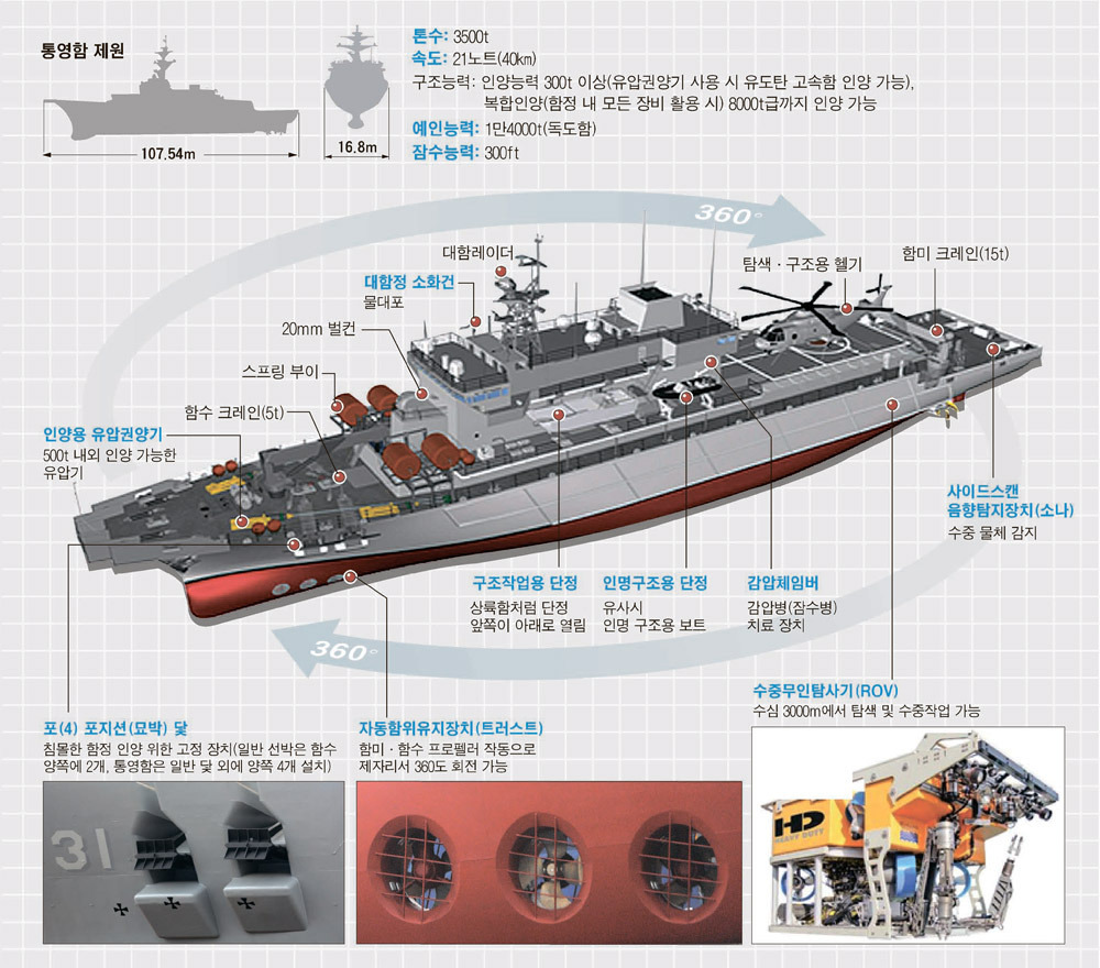 - 통영함·광양함: 침몰함 인양·소화·예인·항만 장애물 제거