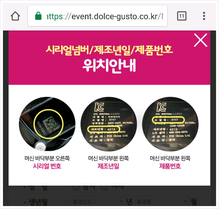 돌체구스토 정품 등록 방법 스텔리아 시리얼 넘버 위치