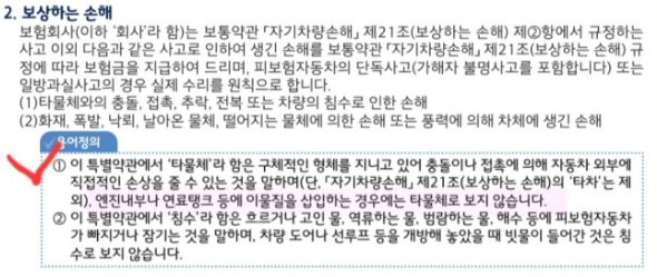 대부분의 자동차 보험의 혼유사고 보험처리에 대해서 다음과 같이 명시하고 있습니다.