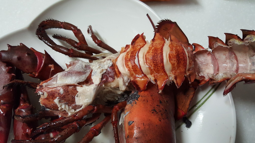 사실, 먹을 수 있는 부분보다 껍데기 쓰레기가 더 많이 나오는 랍스터는, 그 크기에 비해 실질적으로 먹을 수 있는 부분이 그렇게 많지 않습니다. 랍스터가 먹었던 새우 껍질이나 갯지렁이 같은 미끼들이 위 속에 가득 차있을 수 있습니다. 다행히, 랍스터를 찌는 동안 이러한 미끼들이 같이 쪄져서 맛의 복합성에 기여했을 것입니다.