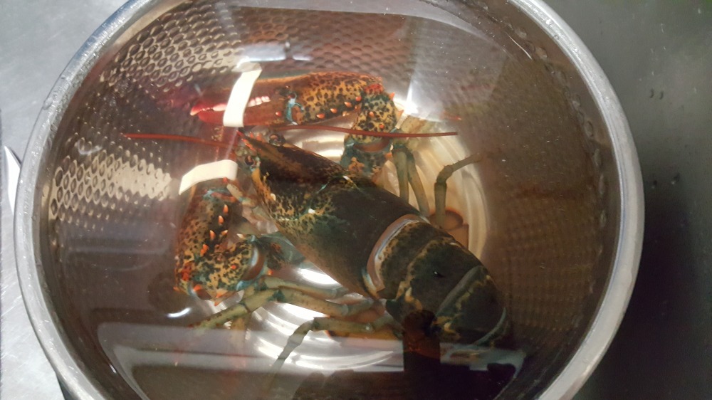 랍스터 손질의 첫 번째 단계는 바로 '랍스터 담가두기'입니다. 랍스터를 수돗물에 30분 정도 담가두는 것이죠. 이 단계는 랍스터의 체내에 있는 불순물들을 제거해 주는 역할을 합니다. 수돗물을 마시면서 랍스터는 스스로 체내에 있는 불필요한 물질들을 토해내게 되는데, 이 과정에서 랍스터는 조금 기절하는 상태에 이르게 됩니다. 물론, 이것은 랍스터의 건강에 해가 되는 것이 아니라, 오히려 랍스터 손질을 용이하게 하는 과정이랍니다.