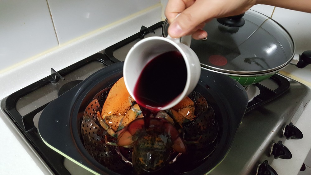 랍스터를 찌는 과정 중에는 잡내 제거를 위해 소주를 반 병 정도 부어주는 것도 좋습니다. 저는 이번에 소주 대신에 집에 남은 와인을 사용해 보았는데, 이것이 어찌나 훌륭한 선택이었는지 모릅니다. 와인을 한 잔 붓고 랍스터를 찌자, 온 집안이 와인 향으로 가득 차게 되었습니다. 그리고 이렇게 와인향을 풍긴 채로 랍스터를 약 20분 동안 찌면 끝! 이제 맛있는 랍스터를 즐길 준비가 완료되었습니다.