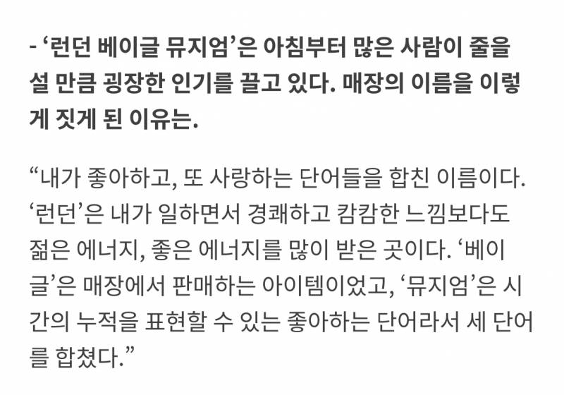 런던베이글뮤지엄 대표가 밝힌 작명법 좋아하는 도시 + 판매하는 아이템 + 좋아하는 단어 조합