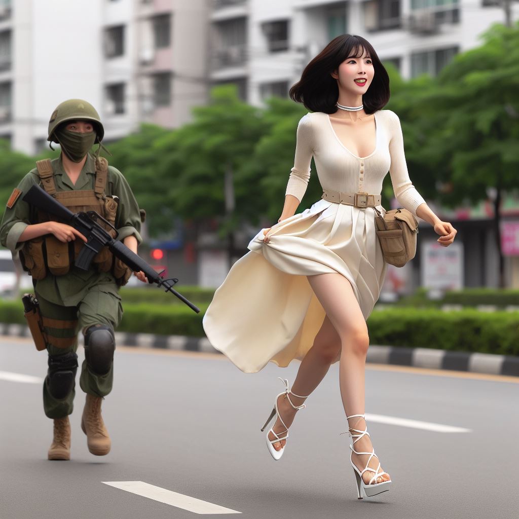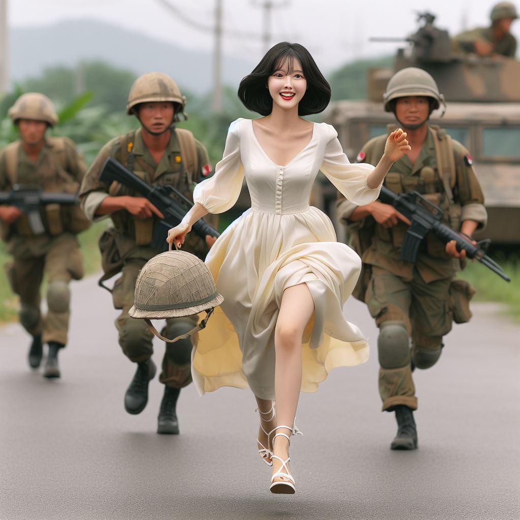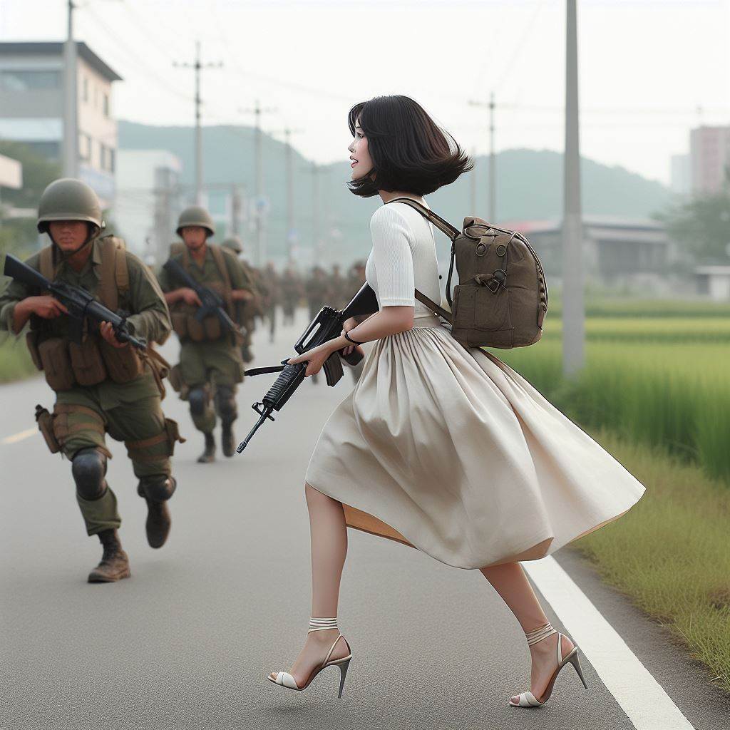 여자들이 옷을 입고 지나가는 걸 봤어요