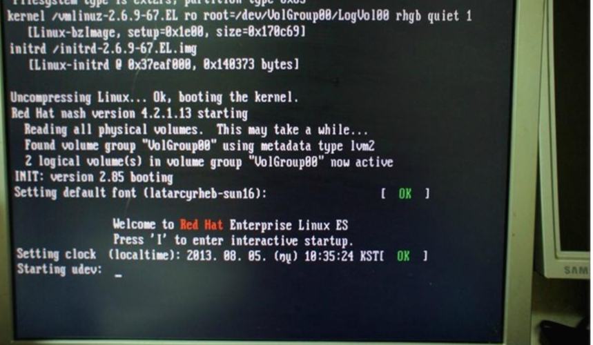 kernel /vmlinuz-2.6.9-67.EL ro root=/dev/VolGroup00/LogVol00 rhgp quiet