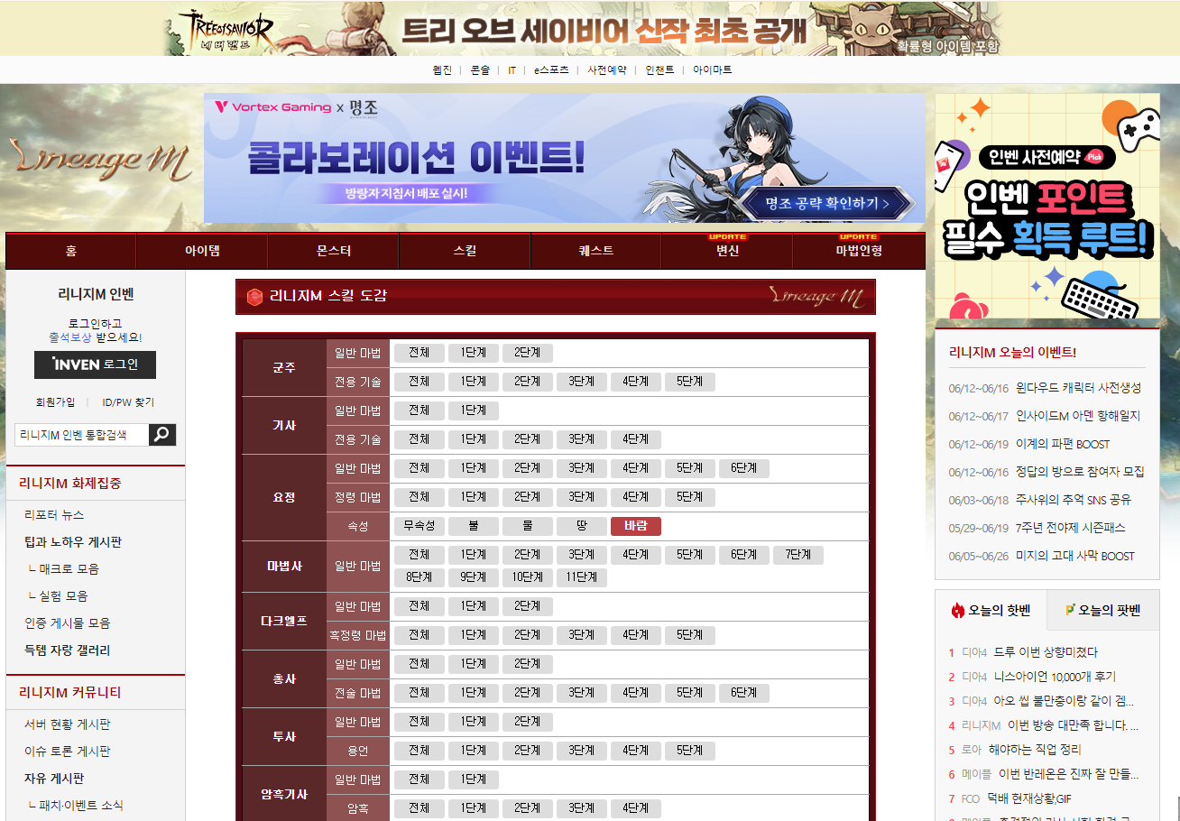 리니지M 인벤 공략, 팁, 노하우 게시판 등