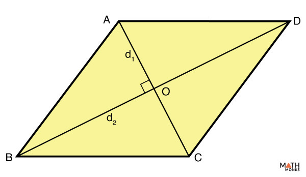 여기서 (d_1)과 (d_2)는 각각 마름모의 두 대각선의 길이입니다. 이 공식을 이해하기 위해 마름모 ABCD를 생각해 보겠습니다. 두 대각선이 만나는 점을 O라고 할 때, 삼각형 AOB의 면적을 구하고, 이를 4배 하면 마름모의 전체 면적이 됩니다.