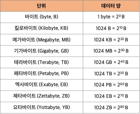 - 제타바이트(ZB) 10²¹ Byte = 10¹⁸ bit → ‘억’보다 훨씬 크고 ‘경’에 근접.