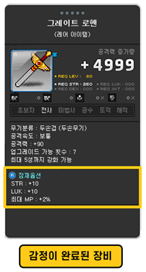 - TIP: 몬스터를 사냥해서 획득한 아이템은 감정하거나 잠재능력 부여 주문서 사용 시 최대 유니크 잠재등급까지 부여될 수 있습니다.