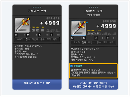 - 장비 아이템 툴팁 하단의 잠재능력 표시