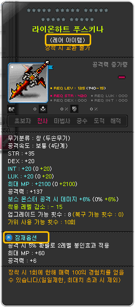 - 장비 아이템 툴팁 하단의 잠재능력 표시