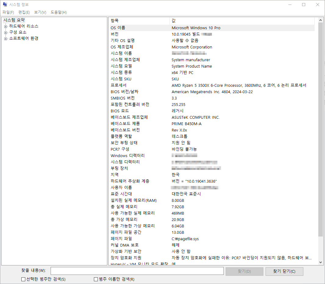 메인보드 모델 확인 - 프로그램 설치 없이 윈도우10 컴퓨터 사양 확인법