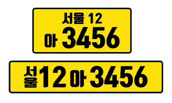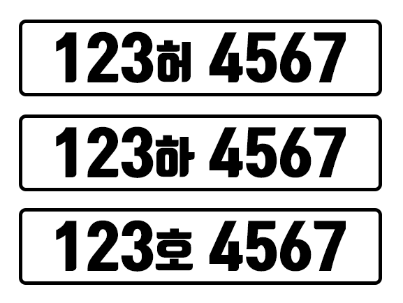 렌터카는 일반 자가용과는 다른 방식으로 번호판이 구성됩니다. 중간에 위치한 한글 부분에는 '허', '하', '호' 중 하나를 사용하여 일반차량과 구분할 수 있습니다.