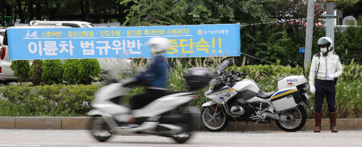 이륜차 역시 번호판을 통해 정식으로 식별됩니다. 지자체에 사용 신고를 통해 번호판을 부여받으며, 영업용과 비사업용에 대한 구분 없이 하얀 바탕에 파란 글씨로 표시되며, '[지역가0000]' 형식으로 번호가 부여됩니다.