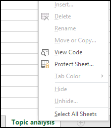 통합 문서 내에서 시트 구조 변경 옵션을 사용할 수 없는 것을 확인할 수 있습니다. (시트 삽입, 삭제, 이름 변경, 이동 등)