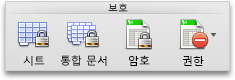 - "시트 보호" 또는 "통합 문서 보호"를 클릭합니다.