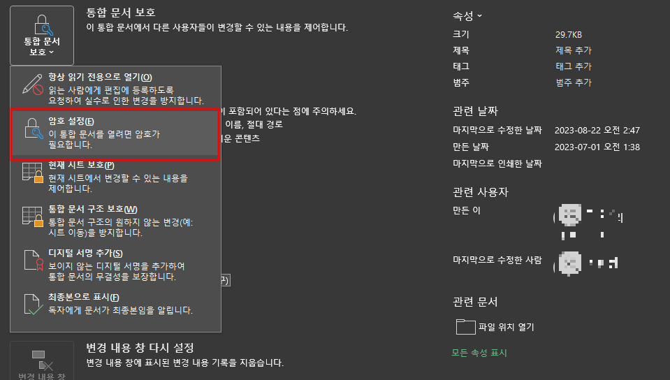 엑셀 파일 암호 설정과 해제 방법: 통합문서 및 시트 보호 암호 걸기